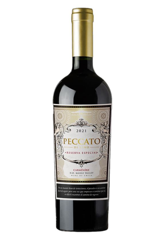 A linha Peccato Di Vino é composta por 6 vinhos da Bodegas y Viñedos Aguirre. A inspiração desta linha foi trabalhar com a obra Divina Comédia de Dante Alighieri que faz alusão aos 7 pecados. Reserva Especial Carménère e Merlot é uma dupla de vinhos mais intensa com taninos bem macios e 10 meses de passagem por barrica.